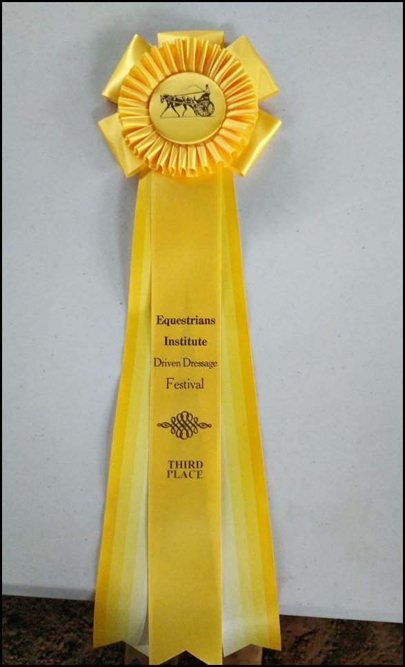 Vista and I went to our first dressage carriage driving show and thrilled to say we got 3rd placing at our first competion- I won Third out of 30 more experienced drivers! Even beat my trainer by 10 pts, and with in 8 10's from first. I got several 8 and 7's my winning score was 69.9% So very happy!