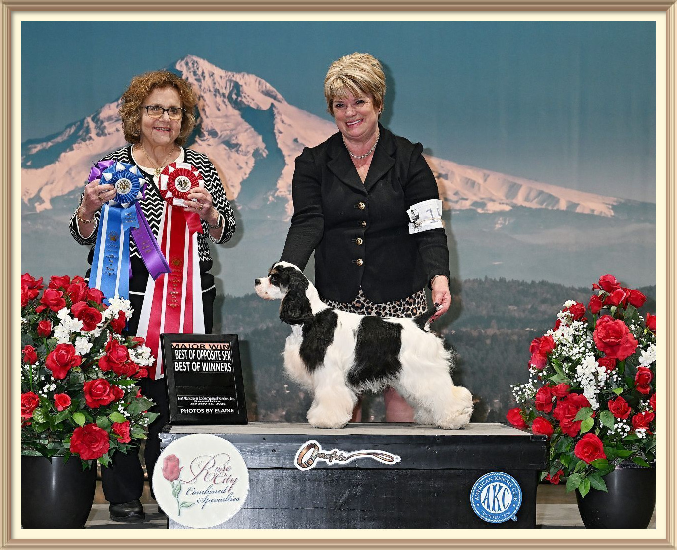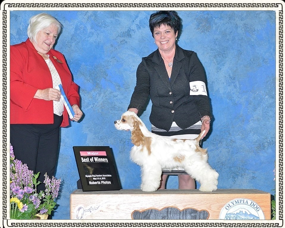 'Cassidy' was BOS to Variety at all shows, BW at the 2 Rainier Sporting Shows, she was also BOS Bred at both Cocker Specialites.Thanks to Judges Kathy Brock and Honey Glendening, Best Bred By Exhibitor at Both Specialities and Best Owner Handler in Breed at the First SpecialityI have now moved her up and was awarded BOS to Variety today.